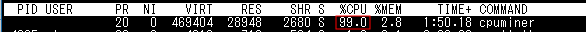 CPUMiner、CPULimitは起動したらログを垂れ流したり、終了を待って他のコマンドが打てなくなるのでscreenを使いました