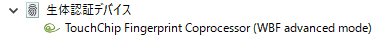 デバイスドライバ上からは生体認証デバイスと認識されているのを確認します