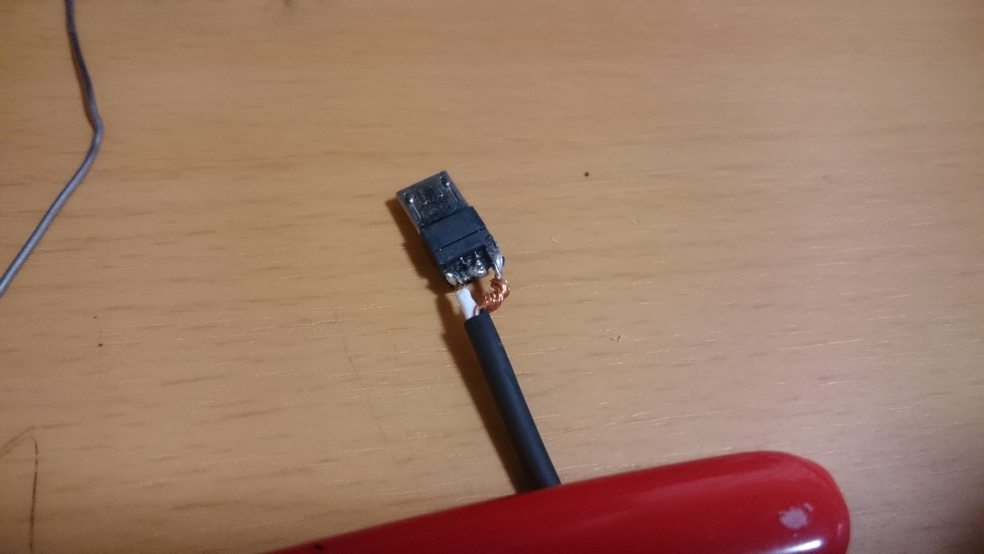 少々余裕があったので絶縁体をそのまま剥がし、半田付けしただけです。