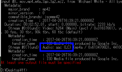 今回の動画はAACだったので、ファイル名はm4aとなります