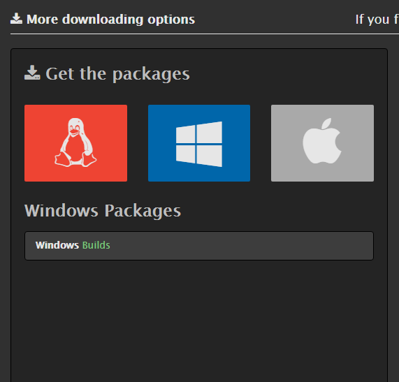次に開かれるページで下部にあるWindwosアイコンをクリックしてから、Windows Buildsを開きます