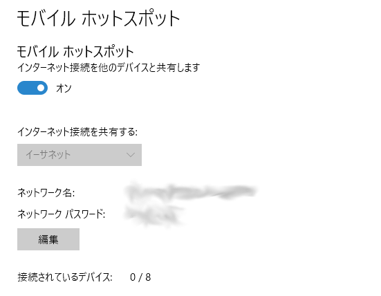 設定→ネットワークとインターネット→モバイルホットスポットより設定できます