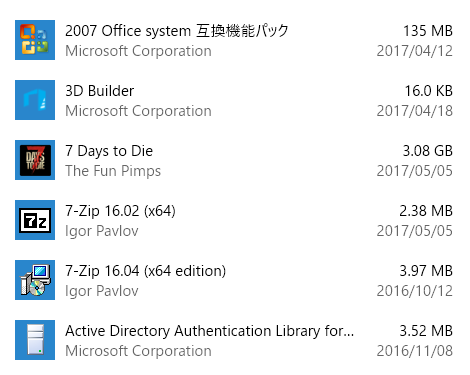 個人的にはコントロールパネル上にあった「プログラムと機能」のほうが一覧が小さくてたくさん見れたので、それに比べて非常に大きいです