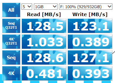 出荷時状態でCrystalDiskMarkを実行してみました