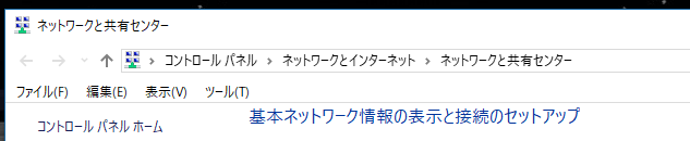 ネットワークと共有センターが開かれるのでアドレス欄の「コントロールパネル」をクリック