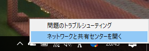右クリックして、「ネットワークと共有センターを開く」をクリック