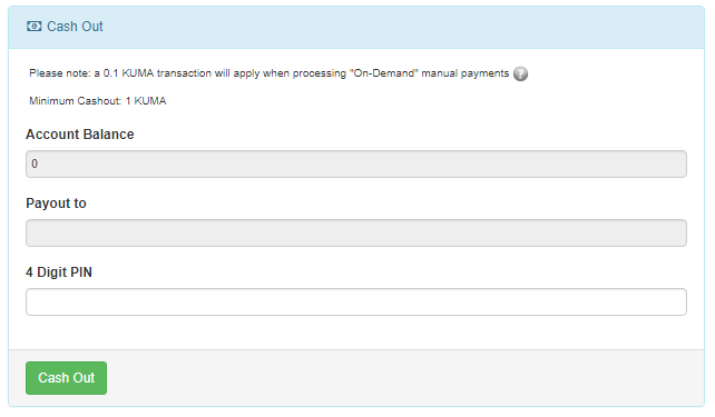 出金(Chash Out)にPINコードを打ち込めば全額出金できる