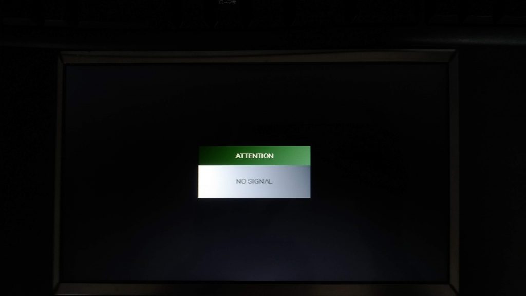 12vとを接続するとコントローラーのキーにLEDが緑に光り一般的液晶と同じようにNo Signalとでてきました