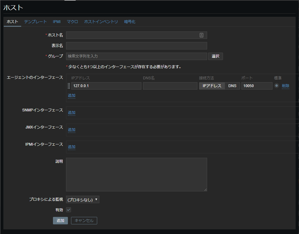ですが、場合によってはドメイン名ではうまくいかない場合があるのでIPv4、IPv6アドレスにするといいかもしれません(Zabbix agent on {HOST.NAME} is unreachable for 5 minutes