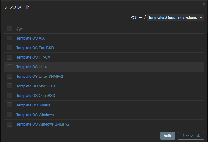 グループをTemplates/Operating systemsを選択し、対象のOSにあったテンプレートを選択します