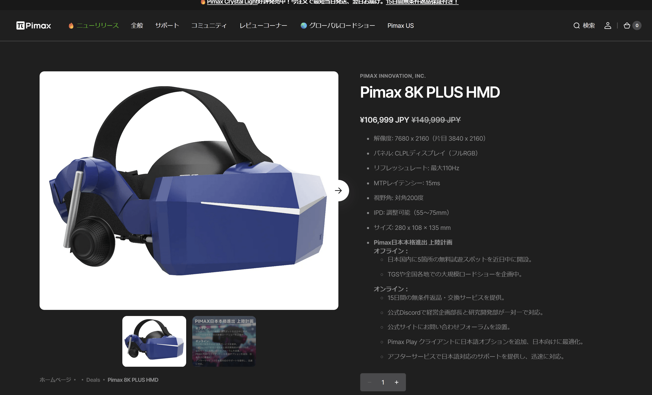 一応Pimax君は8KPlusと8KXがあるのでこいつは下のグレードと思ってください